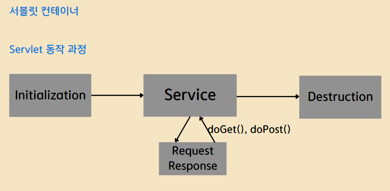 서블릿 컨테이너는 서블릿 클래스를 로딩해서 인스턴스화하고, 초기화 메서드를 호출하고, 요청이 들어오면 서블릿 메서드와 매핑을 하는 역할을 합니다. 그 후 서블릿이 제 기능을 다하는 순간 Garbage Collection(GC)를 통해 메모리상에서 서블릿을 제거합니다.