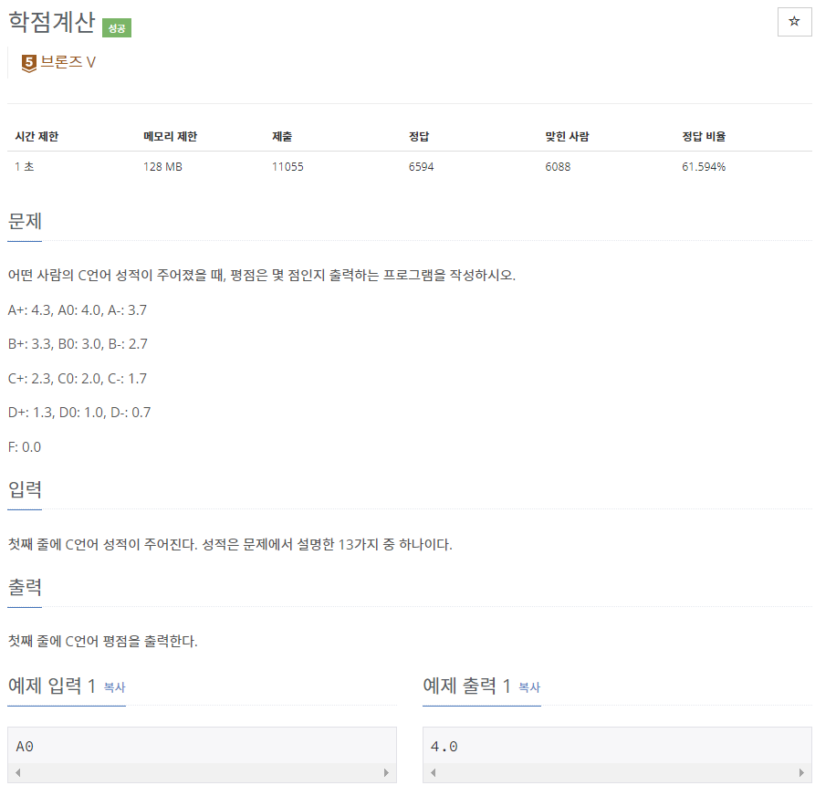 📌 백준 2754번 학점계산