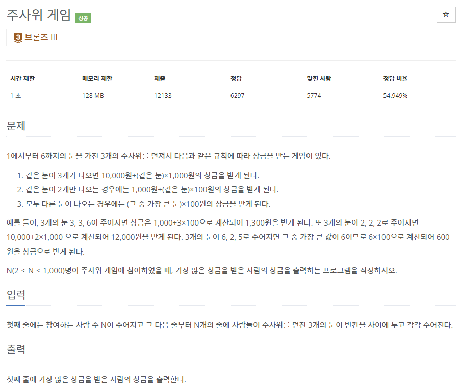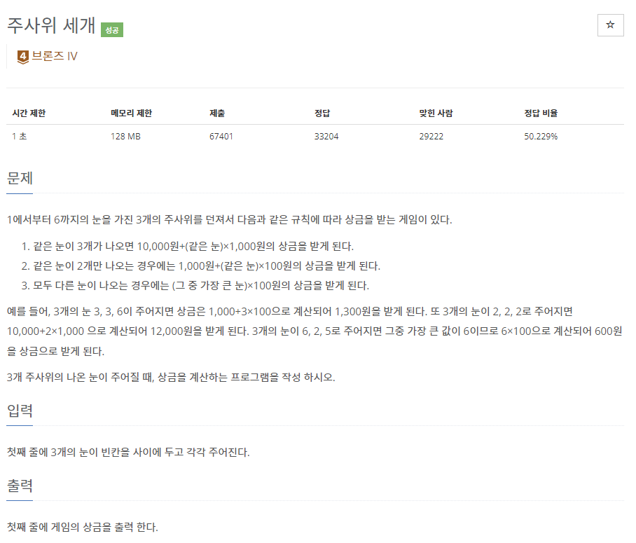 📌 백준 2480번 주사위 세개
