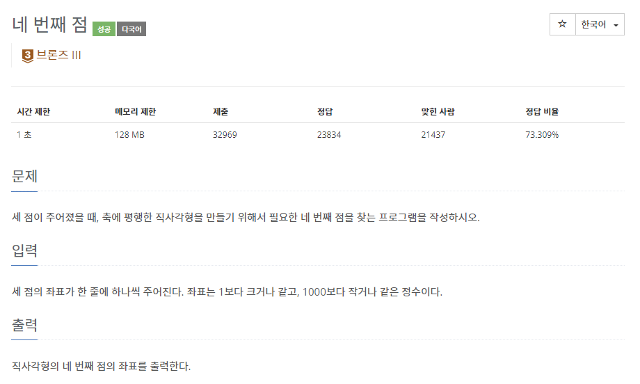 📌 백준 3009번 네 번째 점