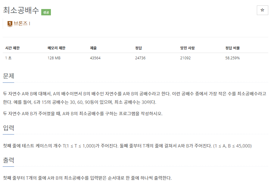 📌 백준 1934번 최소공배수