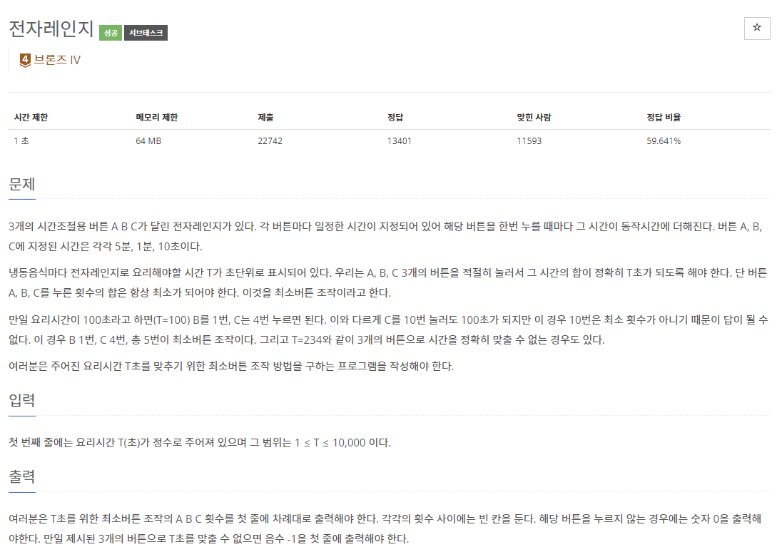 📌 백준 10162번 전자레인지