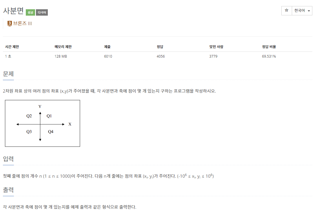9610번: 사분면