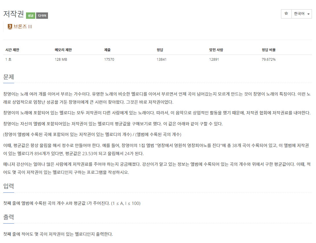📌 백준 2914번 저작권