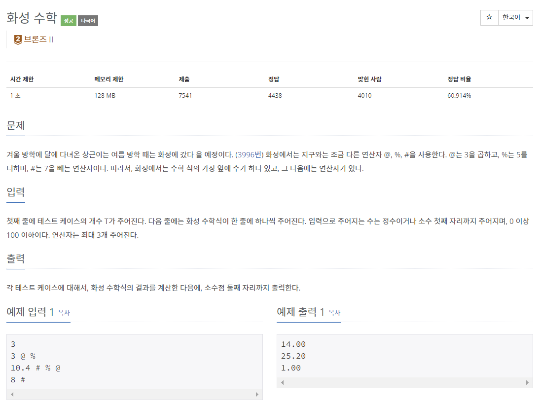 📌 백준 5355번 화성 수학