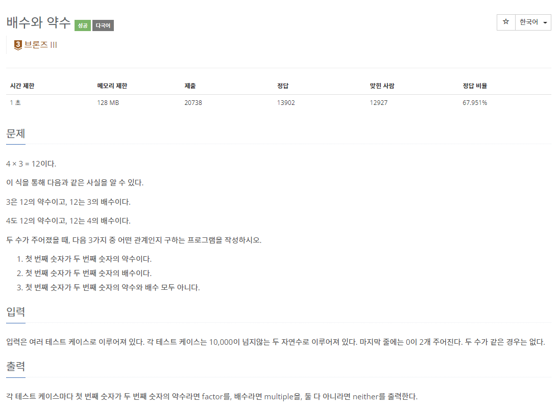 5086번: 배수와 약수