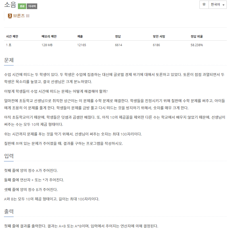 ✋ [파이썬/Python] 2935번 소음 백준 알고리즘 및 풀이