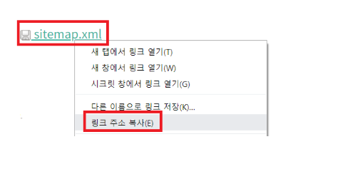 오른쪽 클릭한다음 링크 주소를 복사해줍시다.